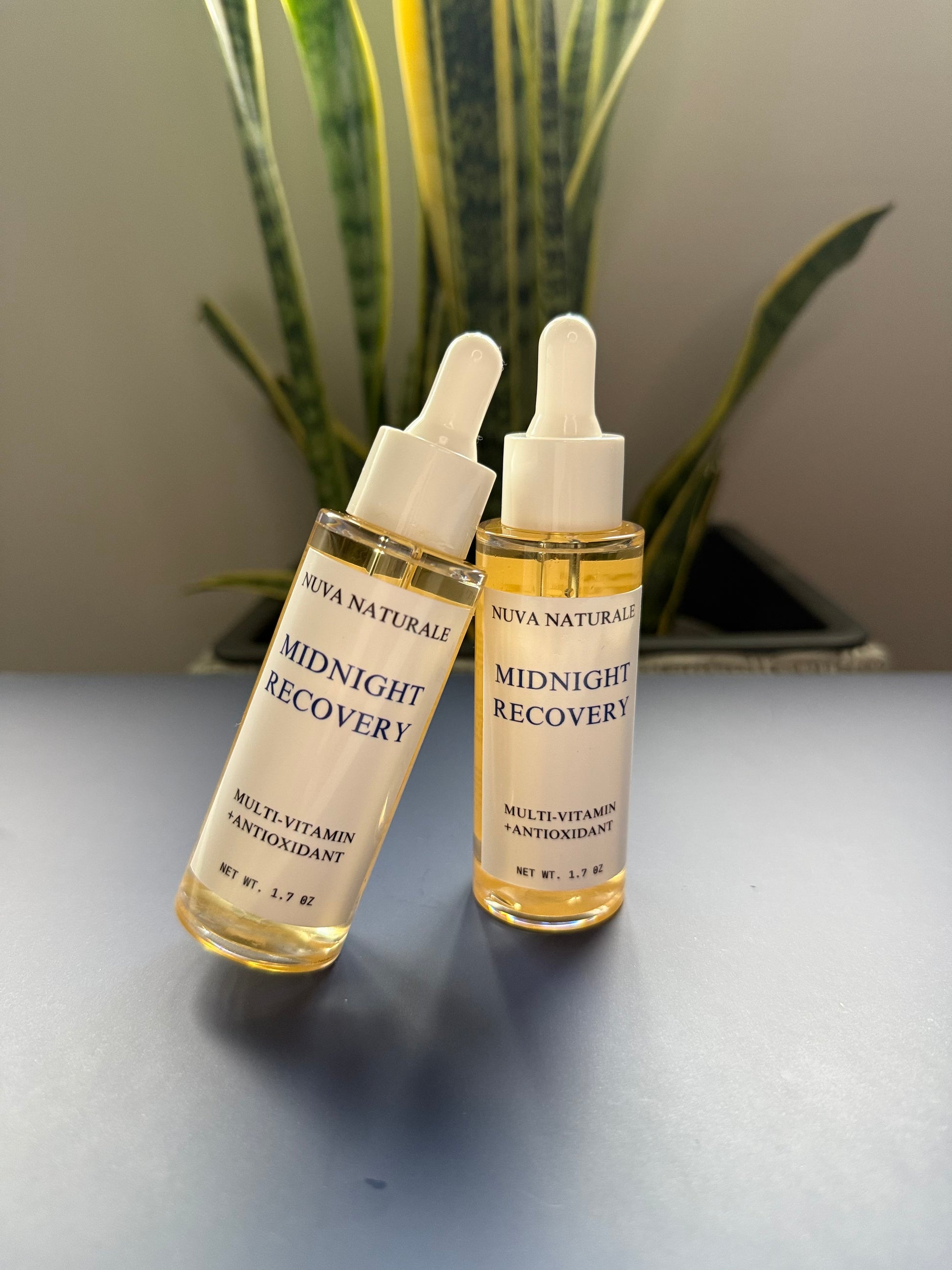 Our Midnight Recovery Face Oil is meticulously crafted with infused oils filled with vitamins & antioxidants. This serum reduces pores, acne-causing bacteria, redness & scars leaving your skin plump, clear & blemish free.